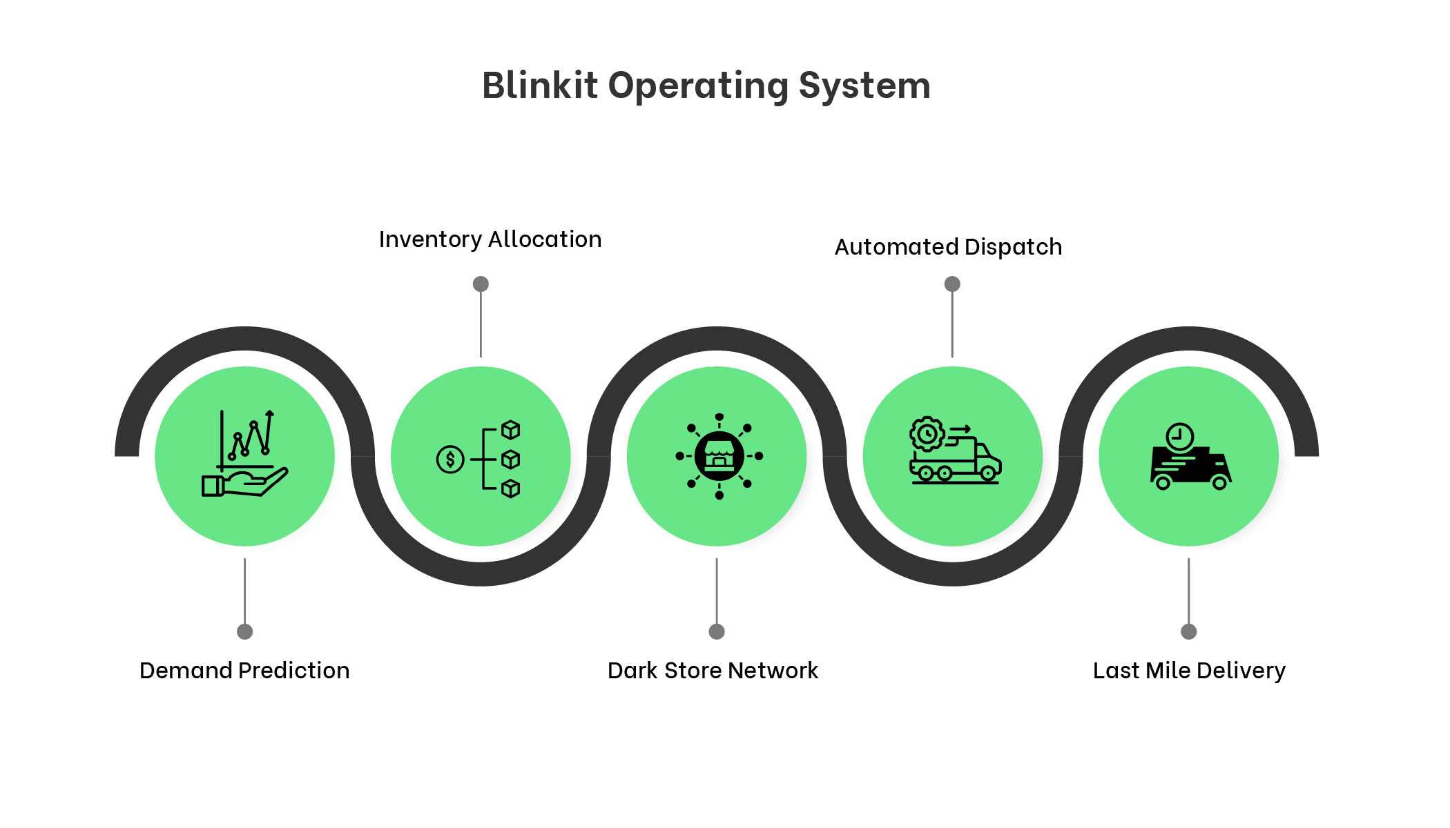 Demand Prediction → Inventory Allocation → Dark Store Network → Automated Dispatch → Last Mile Delivery